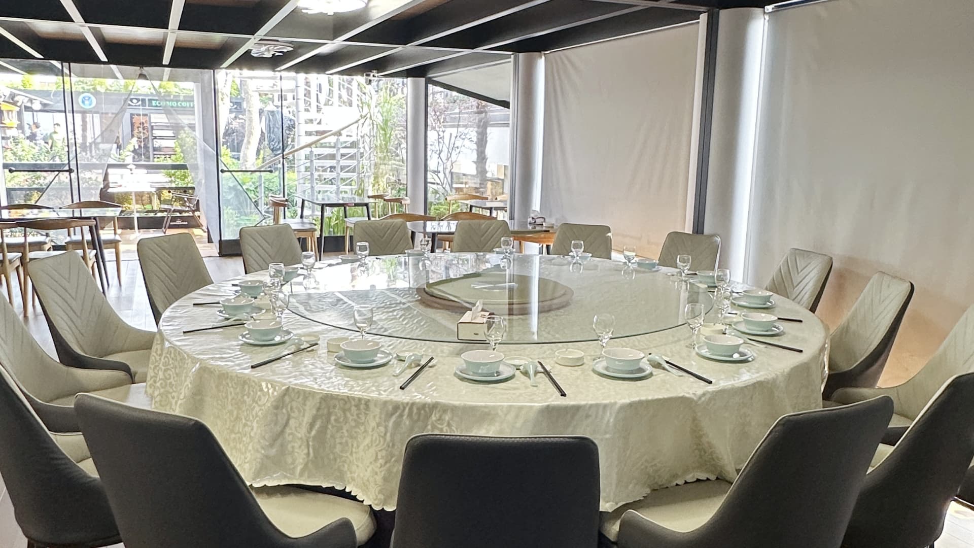 高端餐厅的私密包厢:如同图片所示,为食客提供在花园水景中用餐的顶级私享体验。
